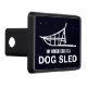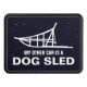 Texto que dice "MI OTRO COCHE ES UN PERRO SLED" y una silueta blanca de un perro en un fondo estrellado.