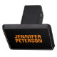 Un gran diseño con letras naranjas en negrita sobre fondo negro. Con un producto como este, atraerás toda la atención hacia ti mismo. Tu nombre en negrita y su dirección sorprenderá a todos en un instante.