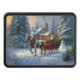 Santa conduciendo un trineo de un caballo para entregar regalos de Navidad en un pequeño pueblo
