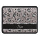 Ideas de regalo de música. Calaveras de azúcar y notas de música negra antecedentes de purpurina de patrones (NO REAL PURPURINA) con una franja de diamantes de bling (NO DIAMANTES REALES) con corazones y puntos personalizados con su nombre regalos o regalos de monograma o sus iniciales. Ideal para músicos, bandas y aficionados a la música.