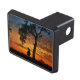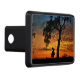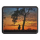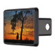El paso de un remolque de Guay de un vaquero rotando y un gran roble en la puesta de sol.