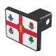 The hitch cover displays the official flag of Montreal in crisp, vibrant detail: a red cross dividing the field into four sections, each adorned with a floral symbol representing the city’s founding communities—the fleur-de-lis for the French, the rose for the English, the thistle for the Scots, and the shamrock for the Irish. Centered within the cross is the unmistakable red maple leaf, a unifying emblem of Canada’s national identity. This symbolic layout makes the hitch cover not just a protective item but a statement of heritage and unity.