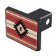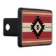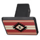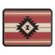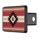 Patrón bohemio étnico azteca con formas geométricas en rojo, naranja, gris y negro sobre fondo rayado
