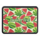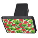 Cortes de sandía rojas maduras. Patrón sin foco. Color de fondo personalizado. Texto personalizado.