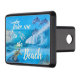Delfines en el surf, tortugas marinas bajo el agua y gente jugando en la playa, idílica pintura costera con "llévame a la playa" en tipografía moderna.