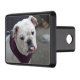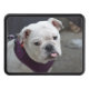 Bulldog blanco con su lengua que se pega hacia fuera.