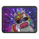 El unicornio arcoiris brilla con un falso efecto purpurina. El fondo presenta una ilusión óptica reflejada. Disponible en otros personajes de dibujos animados kawaii y en muchas otras combinaciones de colores.