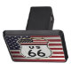 Una señal de tráfico de la derrota 66 del vintage donde he añadido la bandera americana para el color también para mostrar que la carretera corre a través de muchos estados de los E.E.U.U.