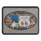 Personalice este trazo adornado con un diseño nostálgico de estilo pegatina oval de la Ruta de Arizona 66. Seligman, Arizona es una de las muchas ciudades a lo largo de la Ruta 66 de la Histórica US. Conocida como la calle principal de Estados Unidos y la carretera madre, la carretera 66 de Estados Unidos fue una de las autopistas originales de Estados Unidos. La autopista conectó Chicago con Los Ángeles a través de ocho estados (incluyendo Illinois y California).