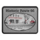 Este paso del remolque presenta una fotografía nostálgica de la Ruta de Arizona 66 en monocromo con color de salpicadura rojo diseñado como un pegatina oval. Winslow, Arizona es una de las muchas ciudades a lo largo de la histórica carretera US Route 66, conocida como Main Street of American y the Mother Road. La carretera US Route 66 fue una de las autopistas originales de Estados Unidos que conectaron Chicago con Los Ángeles a través de ocho estados (incluyendo Illinois y California). Foto original (color) de Patricia AZ Phillips