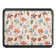 Patrón de caída adorable con hongos personalizados felices azul, naranja y marrón con mejillas rosadas y caras felices. Las hojas verdes, azules, naranjas y cremas también adornan este diseño. El fondo es un color crema claro para terminar este look de otoño.