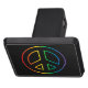 El diseño es un despliegue impresionante y sencillo de creatividad, mostrando el suave gradiente arcoiris del signo de la paz contra un fondo negro audaz. El lienzo oscuro es el escenario perfecto para un símbolo de paz vibrante y colorido, que cautiva el ojo con su contraste dinámico y audaz, aunque minimalista y no demasiado abrumador.