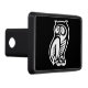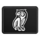 Icono de búho. Símbolo de sabiduría y riqueza. Diseño transparente blanco adecuado para objetos oscuros.