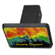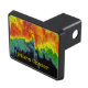 Imagen de color del radar meteorológico que muestra una tormenta y advertencia de tornado que se aproximaLecturas de radar rojas, amarillas, rojas, azules y verdesEl chaser de tormenta en texto amarillo dorado puede ser personalizado con tu propio mensaje