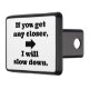 Funny Hitch Cover; Si te acercas, voy a bajar la velocidad. Amable, pero verdadero mensaje para los sastres. Más en la Boutique de la Vida en Cita.