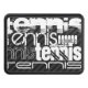 Guay, jugador de tenis blanco, palabra deportiva plantilla de patrón de texto en nube sobre el fondo de rayas diagonales en negro y gris oscuro! Un gran regalo para los niños, adolescentes, adolescentes o adultos; ¡niño o chica! Diseño moderno y bonito con diferentes tipos de letra en blanco y gris.