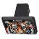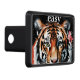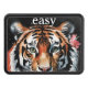 Tigre feroz y la palabra 'fácil' sobre fondo negro. Este diseño peculiar añade un ambiente salvaje pero relajado.
