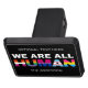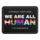 Un hermoso y colorido diseño de dos coberturas de tono "Todos somos humanos" con la palabra "humanos" fue creado por una combinación de banderas del Orgullo Gay LGBT. Agregue sus propios mensajes en la parte superior e inferior de la cubierta para hacerlo más único y personalizado. También puede borrarlos para un diseño limpio y simple pero potente de cubierta de dos hitch para que su viaje brille. Las banderas del orgullo usadas en este diseño son la bandera lesbiana (5 rayas), la bandera LGBT, la bandera bisexual, la bandera transgénero y la bandera pansexual.