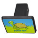 Personalizado ilustracion de una feliz tortuga. Color de fondo personalizado. Texto personalizado.