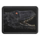 Pieza de arte trex cabeza de dinosaurio con boca abierta sobre fondo negro