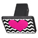 Forma profunda del corazón rosado contra un patrón de zigzag o chevron en blanco y negro.