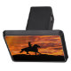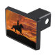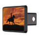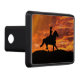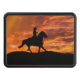 Una cubierta muy fresca de un vaquero montado en un atardecer rojo. Un gran país occidental, cobertor de vaqueros.