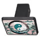Yin yang blanco y negro y Verde azulado Pink and sage green con un toque verde azulado y floral de paisaje montañoso AI generada por minx267