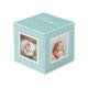 Muestra cuatro de tus fotos favoritas de recién nacidos en estilo de moda con nuestro sutilmente estampado cubo de fotos. El diseño presenta un elegante diseño de enrejado de color turquesa pastel que rodea cada foto de su bebé o chica. Personalice el panel superior con el nombre y las estadísticas de nacimiento del bebé (fecha de nacimiento, peso y longitud).