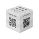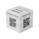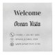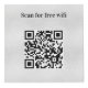 Para habitaciones de hotel, mesas de restaurante, alquiler de propiedades. Personalice y agregue su logotipo de negocio y espacio para 4 códigos QR. Un fondo falso plateado. Texto negro.