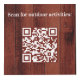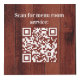 Para las habitaciones del hotel, mesas de restaurante y cabinas de alquiler. Personalice y agregue su logotipo de negocio y espacio para 4 códigos QR. Impresión de madera marrón, rústica como fondo, texto blanco.