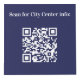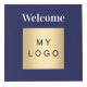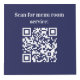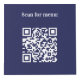 Para habitaciones de hotel, mesas de restaurante, alquiler de propiedades. Personalice y agregue su logotipo de negocio y espacio para 4 códigos QR. Fondo azul marino, texto blanco.