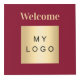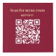 Para habitaciones de hotel, mesas de restaurante, alquiler de propiedades. Personalice y agregue su logotipo de negocio y espacio para 4 códigos QR. Fondo de Borgoña, texto amarillo.
