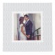 Muestra cuatro de tus fotos bodas favoritas al estilo de la moda con nuestro cubo de fotos con estampado sutil. El diseño presenta un elegante patrón gris de enrejado alrededor de cada una de sus fotos, con su monograma inicial y su apellido en el panel superior.