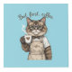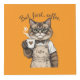 The adorable coffee cat invites you for a cup of coffee. With small black glasses, an apron, and a steaming cup in one paw — who could say no to such a cutie? And that heart on the coffee cup? Simply charming. Like cats? Or maybe coffee? This one’s for you!
