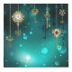 El oro, las llaves antiguas con engranajes y diales cuelgan de las cadenas de oro sobre un fondo verde luminoso.