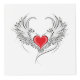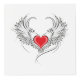 Corazón rojo pintado de forma artística con alas de ángel gris, decorado con un contorno suave negro.