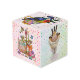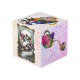 All cute pastel coquette with a tea party setting, tea cups, pastries, candle drum, bird, cat, butterfly, bee, dragonfly, cute things and etc