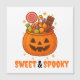 Comparte la alegría festiva de Halloween con esta tarjeta magnética única que incluye una sonriente cubeta de calabaza llena de coloridos caramelos y copas. Perfecto como invitación a fiestas, saludos de temporada o placer decorativo para tu frigorífico o mesa de trabajo. ¡Una manera práctica y lúdica de celebrar la espeluznante temporada!