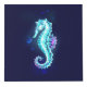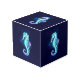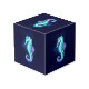 Espumoso, cristal, hielo, poligonal, caballito de mar sobre fondo azul oscuro.