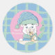 Un lindo pegatina de vacaciones con una acuarela de oso polar mordiendo en una galleta casera. El marco coincide con el gorra del criador. Personalice al pegatina con su texto o déjelo como está . Es perfecto para sellar las tarjetas de felicitación de tus Navidades o las bolsas de favores de tu fiesta de invierno. © ArianeC Ilustraciones-Todos los derechos reservados