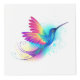 Bright, iridescent, exotic flying hummingbird on  white background, painted over with multicolor, watercolor paint. Rainbow hummingbird.