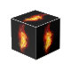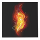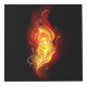 Una brillante pluma de pavo real hecha de fuego y llama sobre fondo negro.