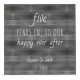 Cubo de fotos de boda Aniversario que puedes personalizar por cualquier año y agregar 4 de tus fotos favoritas. El texto dice "# años para nuestro feliz siempre después" y la plantilla está preparada para que usted añada el año del aniversario, su nombre y fecha establecidos. El diseño tiene un aspecto rústico de madera gris de campo, escrito con escritura casual y tipografía de tipografía delgada. Si tiene algún problema con la colocación de las imágenes, intente recortar a una forma cuadrada antes de cargarlas.