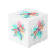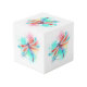 Cubo Fléon roja sobre fondo acuarela