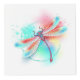 Rojo, volador, dibujado artísticamente, en colores brillantes con hiridismo texturizado, alas azules sobre fondo blanco, pintadas con salpicaduras de pintura acuarela. Flora de dragón roja brillante.