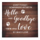Personaliza con cuatro de tus fotos y nombres favoritos . DERECHOS RESERVADOS © 2020 Judy Burrows, Black Dog Art - Todos los derechos reservados. Hola Adiós Perro Mascota de Perro Personalizado cubo de fotos conmemorativas