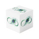 The symbol of infinity with a bright, green, artistic peacock feather on a white background. Tattoo style.