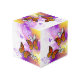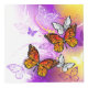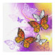 Naranja, mariposas monarcas detalladas sobre la luz, púrpura, pintoresco fondo pintado.