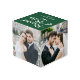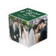 Conmemorar la primera Navidad de los recién casados como pareja casada con este cubo fotográfico verde de navidad casada y recién casados. Este cubo de fotos presenta 4 fotos de bodas con los nombres de la pareja y la fecha de boda en blanco sobre un fondo verde y las palabras "Casado y Cereza" en un hermoso guion con corazones.