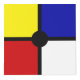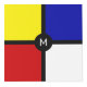 Monograma en la parte superior. Elegante arte inspirado en Mondrian y colores básicos: azul, amarillo y blanco negro. Se cree que los colores básicos aportan una sensación de bienestar y felicidad.
